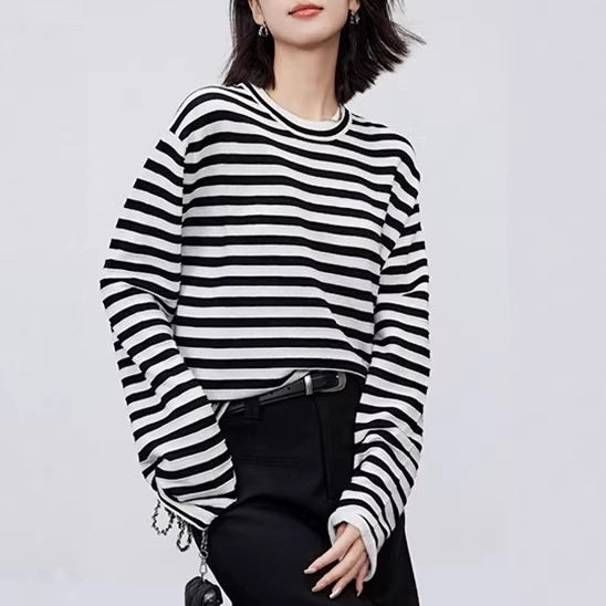 นำเข้าchaoขนแกะขนยาวละเอียดเสื้อสเวตเตอร์ลายยอดนิยมแขนยาวเสื้อbottomingด้านบน
