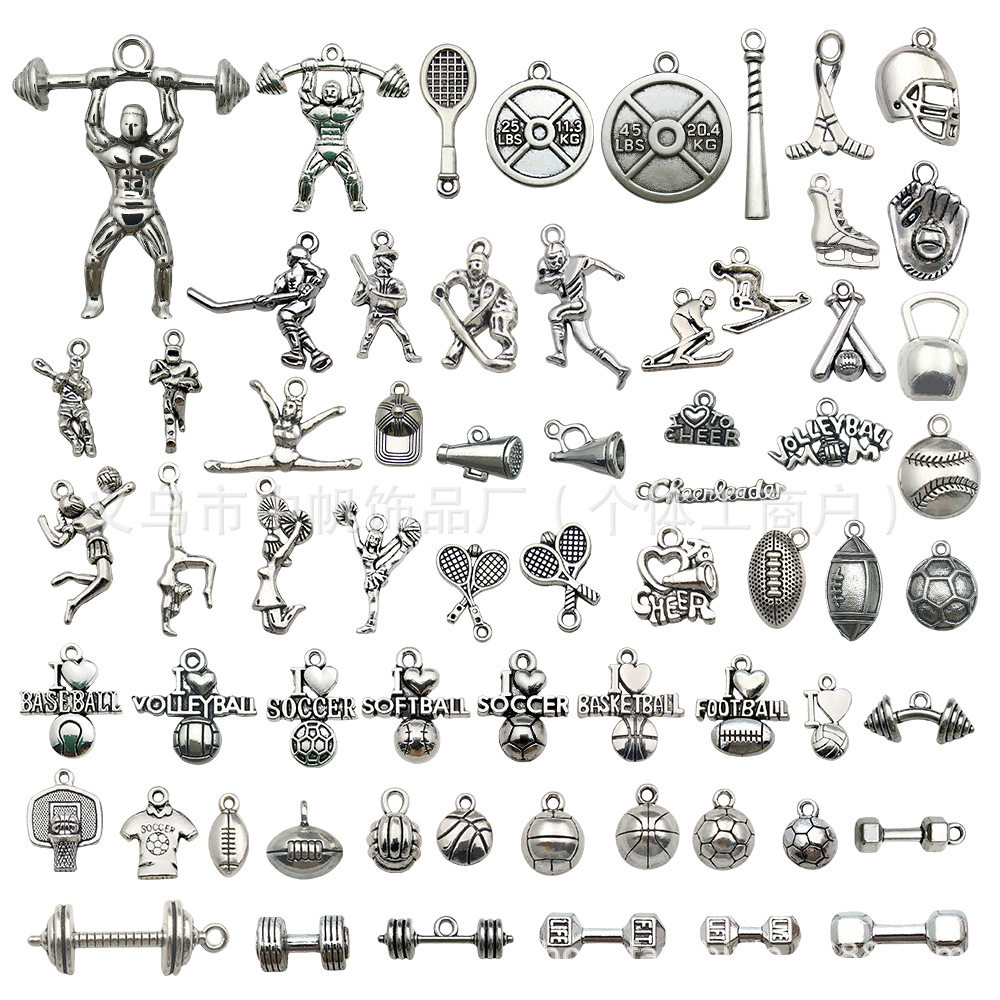 70 ชุดกีฬาโลหะผสมอุปกรณ์เครื่องประดับ DIY สร้อยคอสร้อยข้อมือจี้เสื้อผ้าบาสเกตบอลเชียร์ลีดเดอร์จี้ขนาดเล็ก